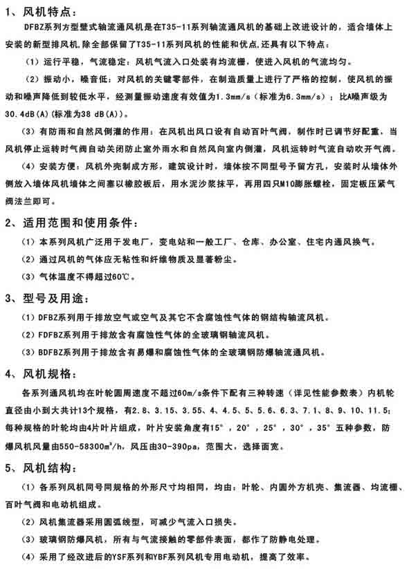1、HTF型消防高溫排煙風機 2、HTF(PYSWF)型高溫排煙混流風機 3、HTFC消防通風兩用柜式離心風機 二、混流通風機系列 1、SWF(HLF)型混流通風機 2、SWF-IV(HL3-2A)型低噪聲節(jié)能混流通風機 3、SWF-V(SJG)型斜流(混流)通風機 4、HLF-6型低噪聲節(jié)能混流風機箱 三、低噪聲軸流通風機系列 1、T35-11(T40-11)型軸流通風機 2、DZ型低噪聲軸流通風機 3、DFBZ型壁式軸流通風機 4、SDF型隧道式軸流通風機 5、DWEX系列邊墻風機 四、屋頂通風機系列 1、DWT-I型軸流式屋頂風機 2、DWT-II(III)型離心式屋頂風機 3、DWT-IV型無動力屋頂風機 4、RTC低噪聲離心式鋁制屋頂風機 |
