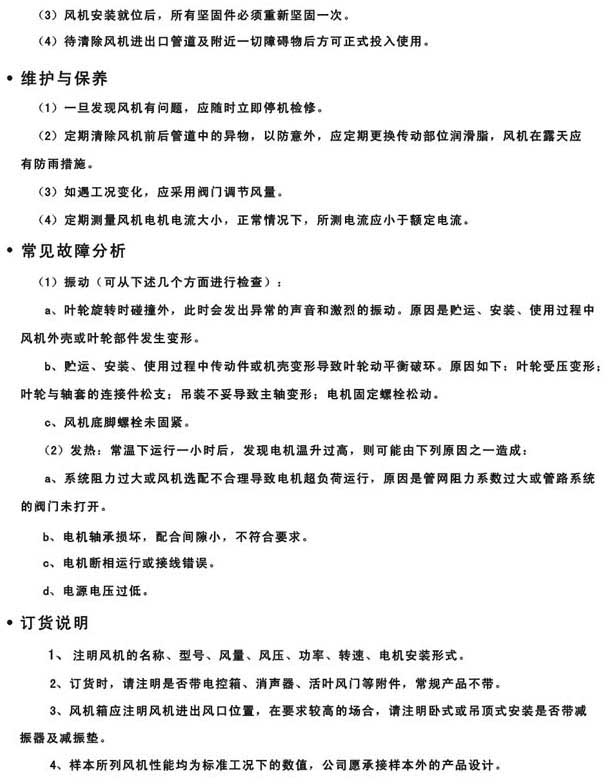 產(chǎn)品名稱:上虞上風風機安裝、維護及訂貨說明